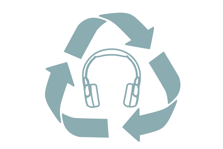 We put a lot of effort into ensuring that we reuse or recycle as much as possible, and our a continuing journey to do better. Our headphones are now made with 55% recycled materials, made up of recycled plastics and recycled packaging. The recycled plastics we use, are TüV-certified post-consumer recycled plastics. All our packaging is 100% recycled: we've saved thousands of kilos of virgin packaging materials. And we do not use any single-use plastics anywhere.