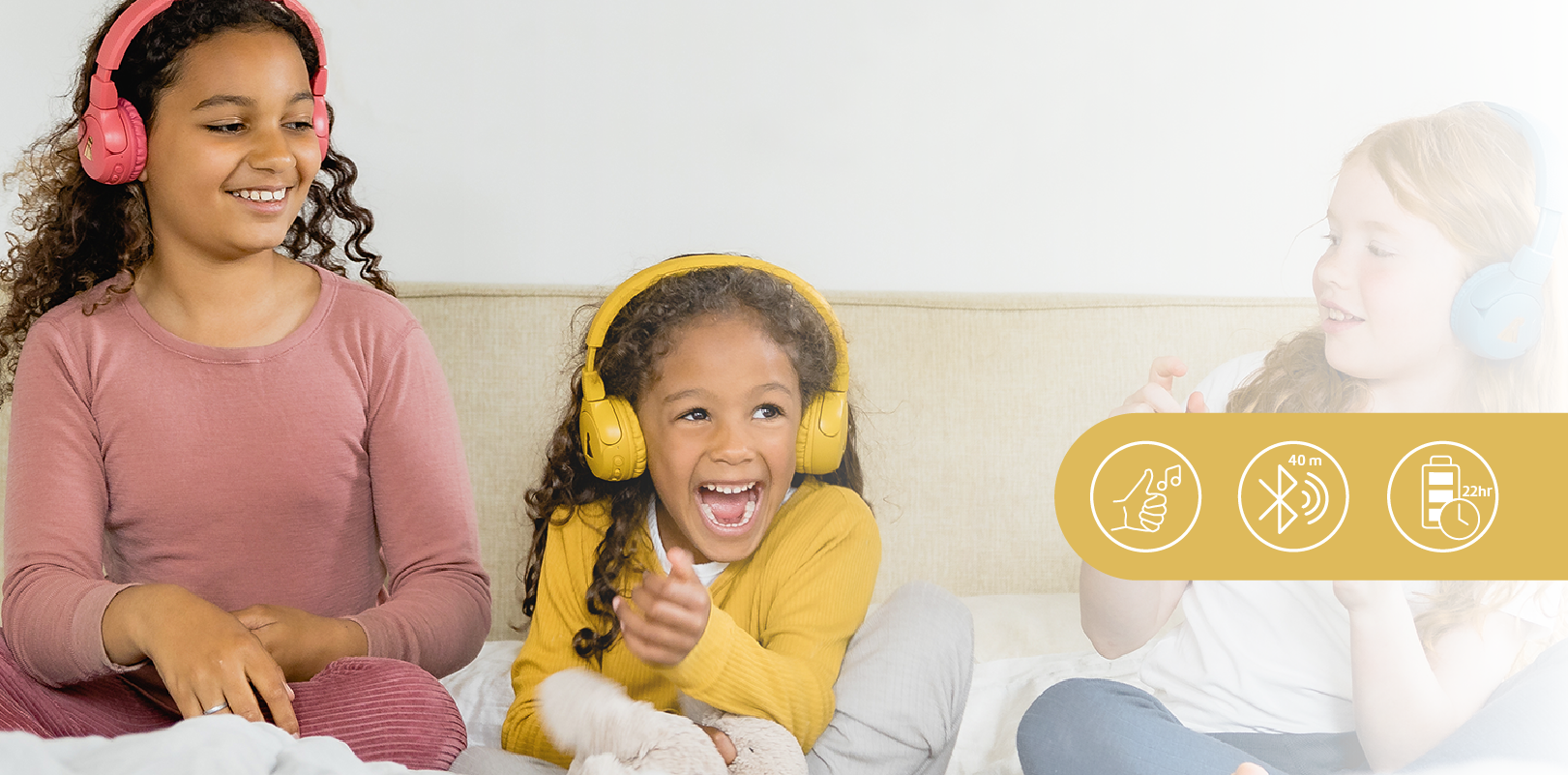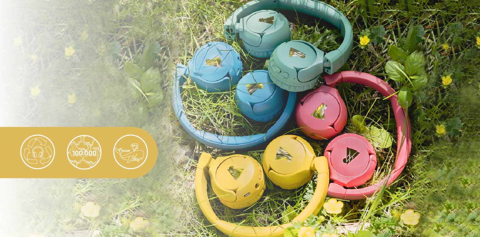 The ultimate wireless kids’ headphones with Bluetooth® connection that allows you to move around freely like a gecko. This next generation has improved safety, comfort and sustainability, including integrated POGS-Safe technology, battery life of 22 hours and app control. Made with 57% recycled materials (plastic and packaging).